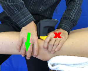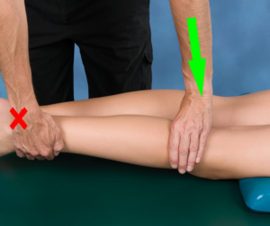 The advantage of the prone glides are that it is easier for the clinician to push than to pull, gravity provides assistance to the mobilization, and the patient can work with you to actively extend the knee during the technique. When the patient works with the clinician to extend the knee, this is called “mobilization with movement.” In addition, in the prone position, the clinician can isolate the medial tibial plateau to apply the anterior glide asymmetrically. This will result in a lateral rotation of the tibia and replicate the “screw-home” mechanism of terminal knee extension.